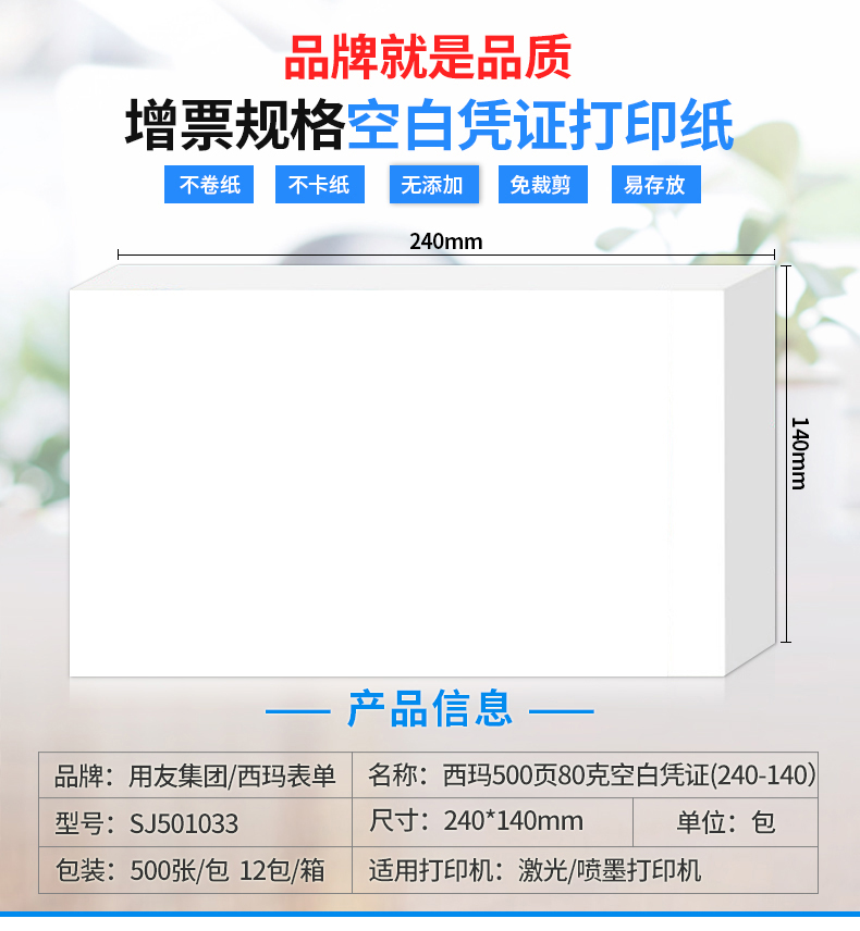 西瑪SJ501033優選80g空白憑證紙 240*140mm