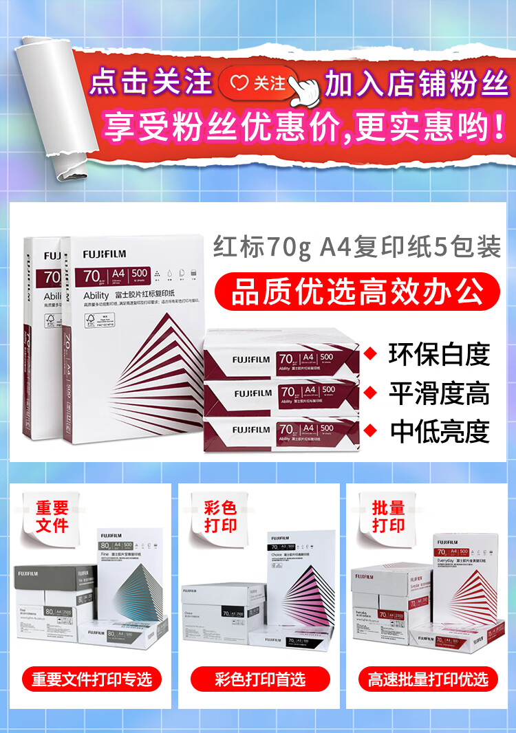 富士膠片紅標復印紙80gA4*5pcs