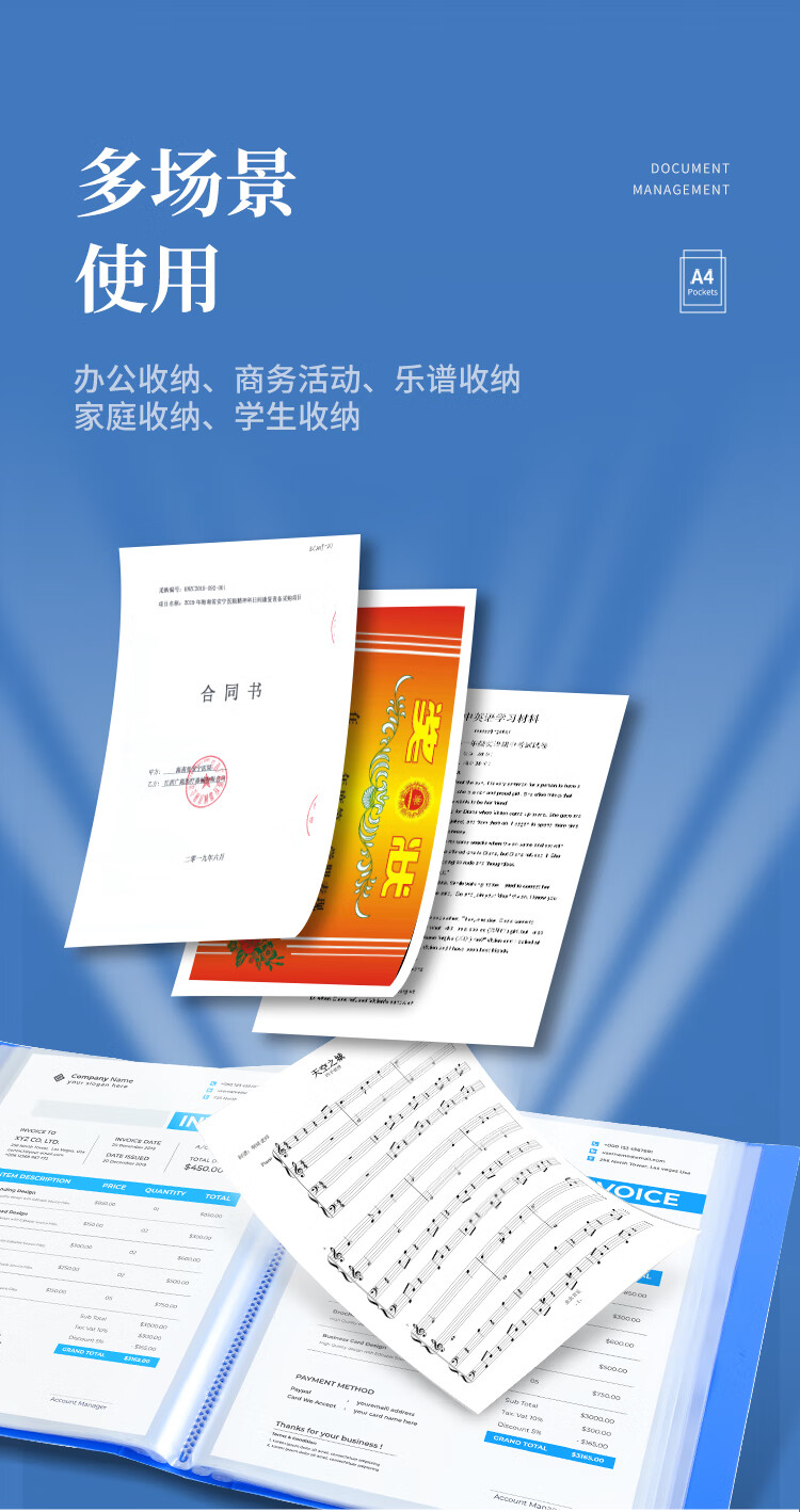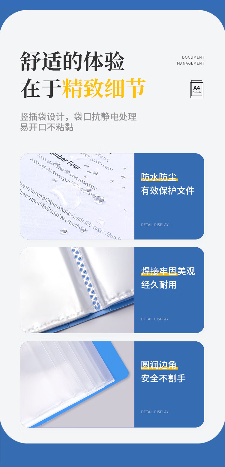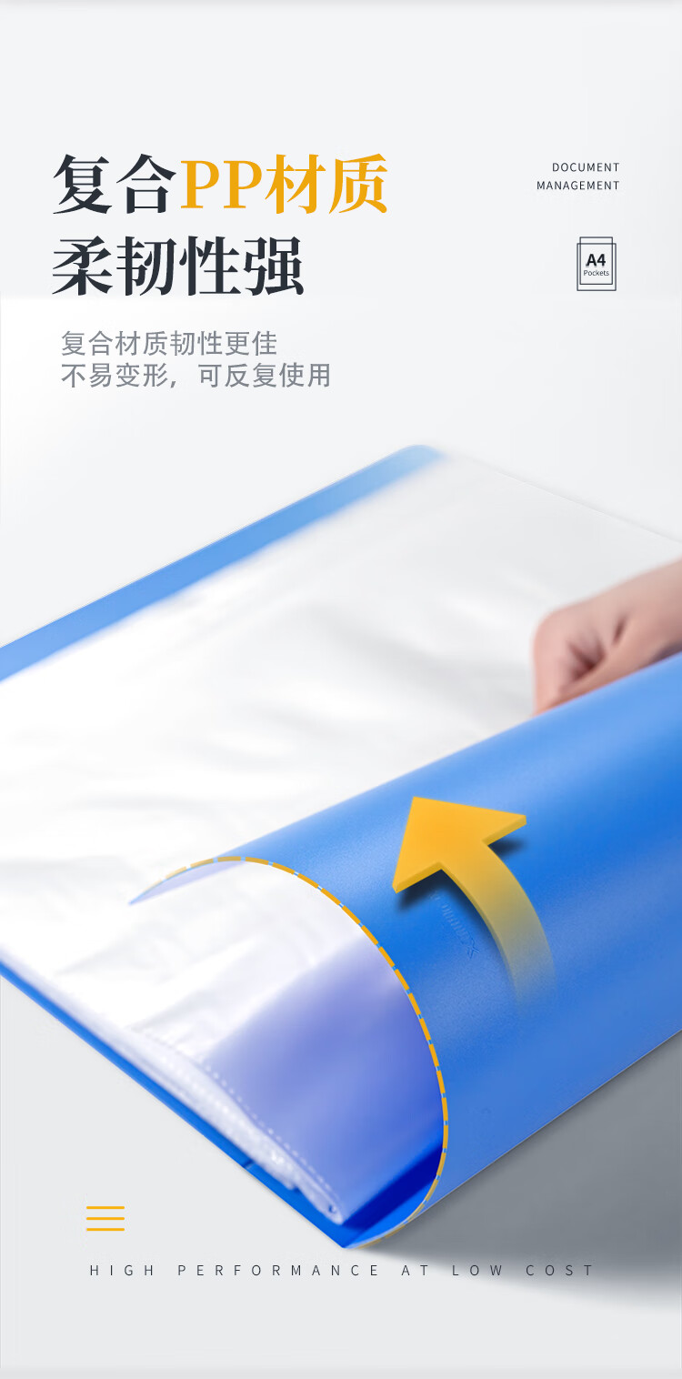 齊心NF406A-S 20頁A4活頁資料冊30孔塑膠夾藍*10