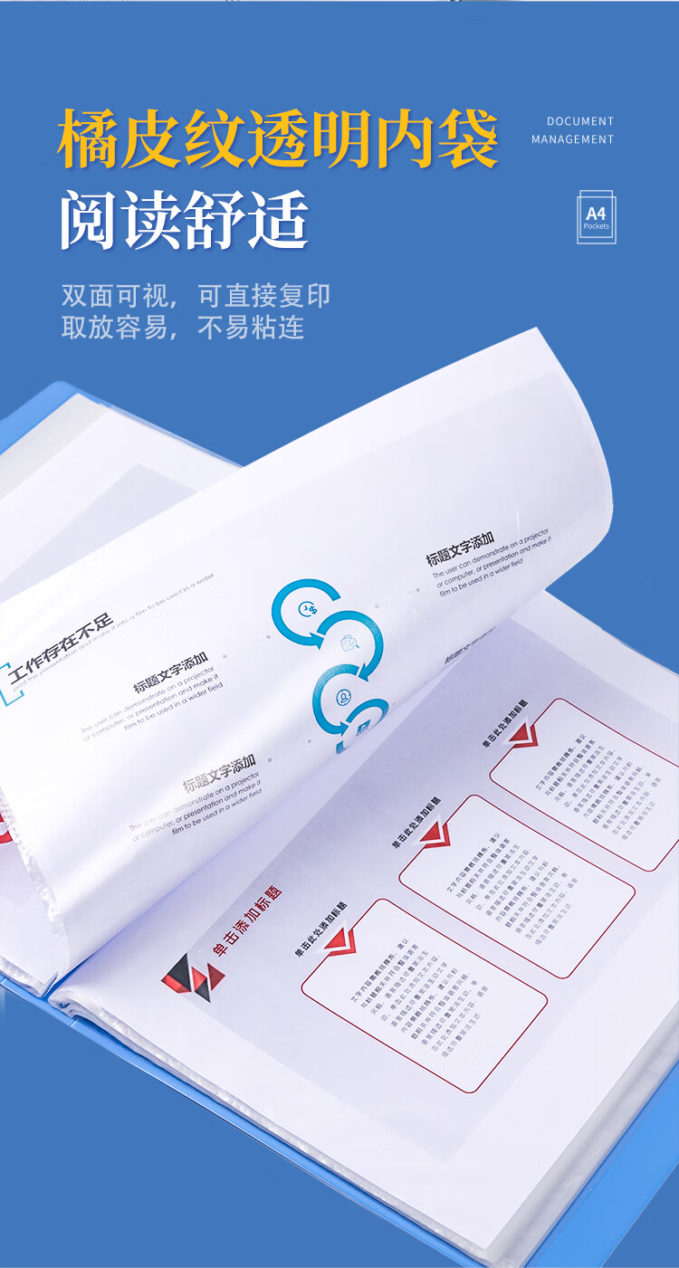 齊心NF407A-S 40頁A4活頁資料冊30孔塑膠夾藍*10