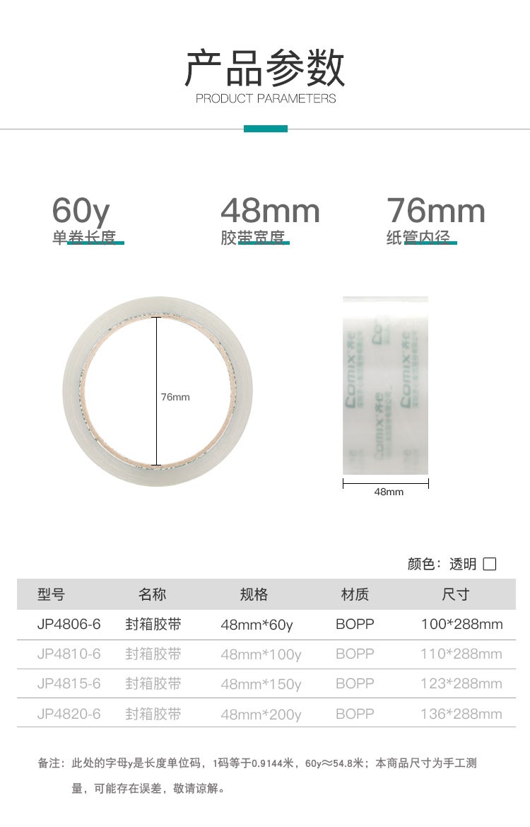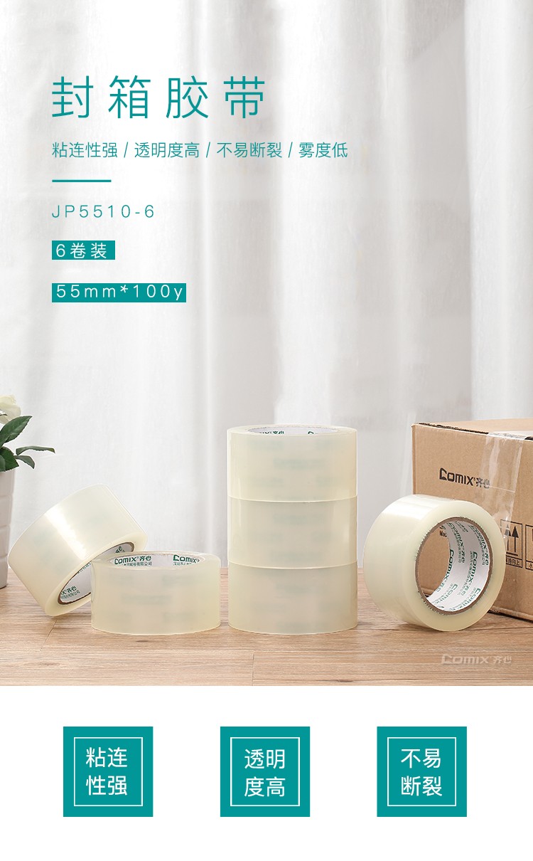 齊心JP6015-6普透封箱膠帶60mm*150y*6卷*3