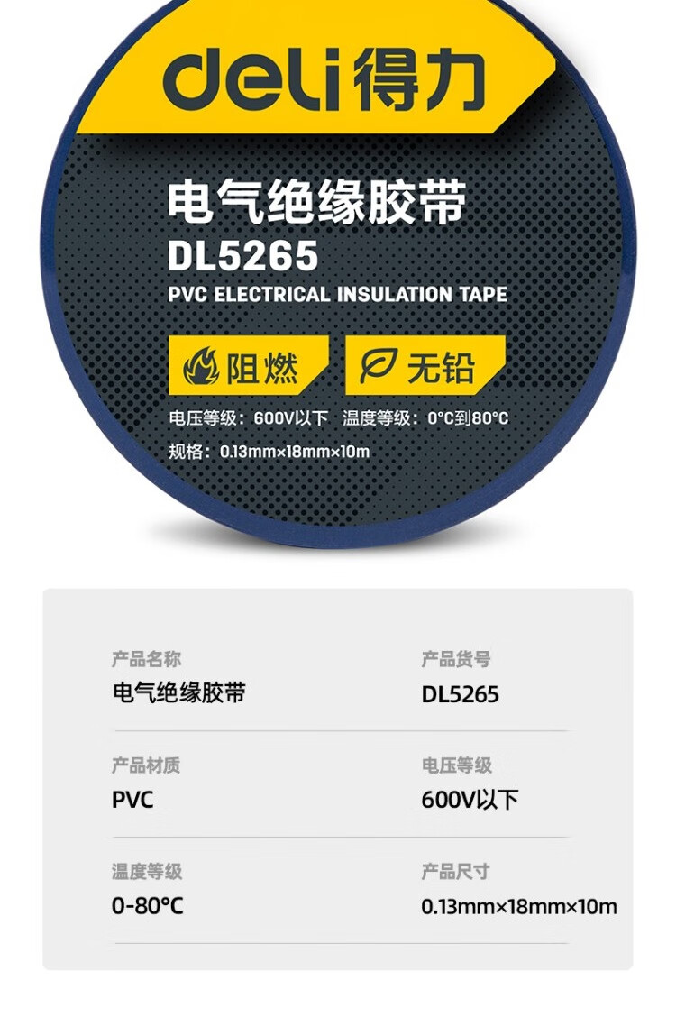 得力DL5265絕緣膠帶(藍(lán))0.13mmx18mmx10m