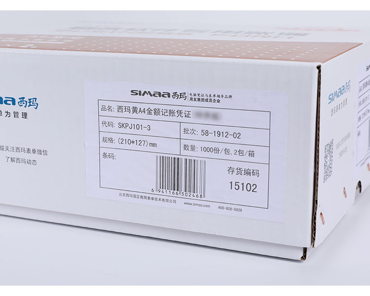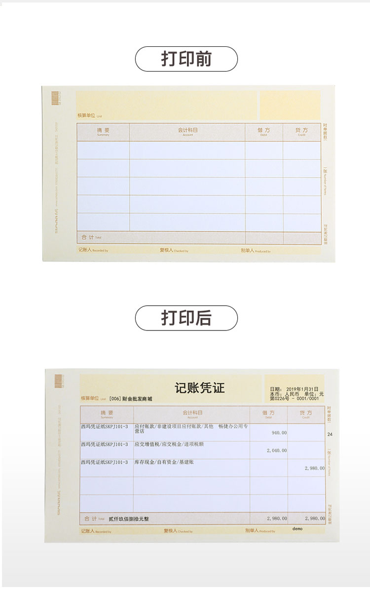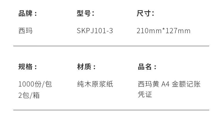 西瑪 用友SKPJ101-3黃A4金額記賬憑證(特供版)