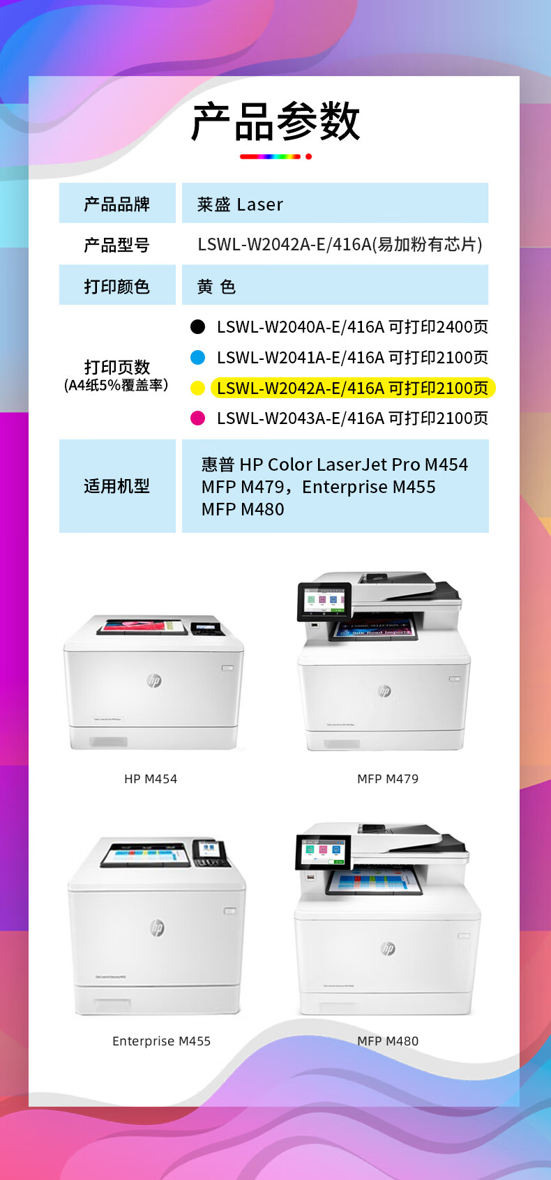萊盛 LS-W2042A(416A)彩色激光打印機粉盒 黃色 全新 有芯片 2.4K 12支/箱