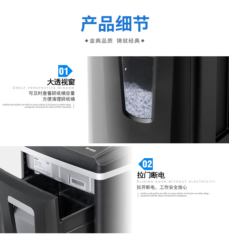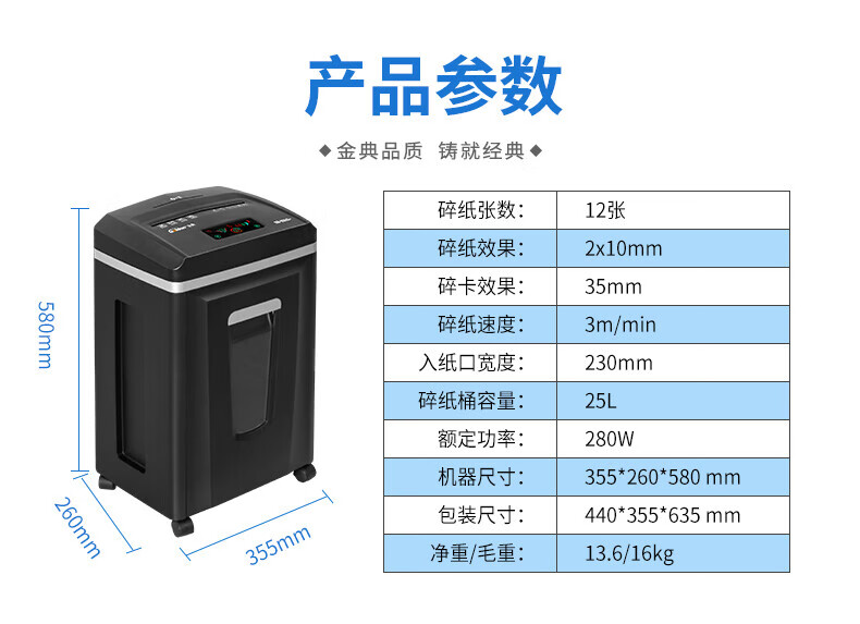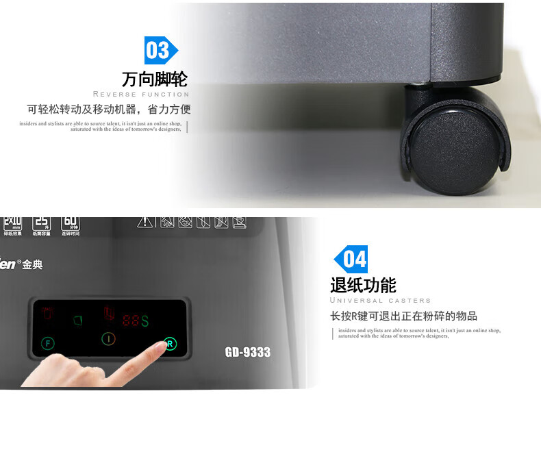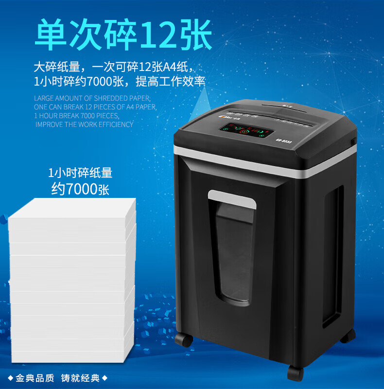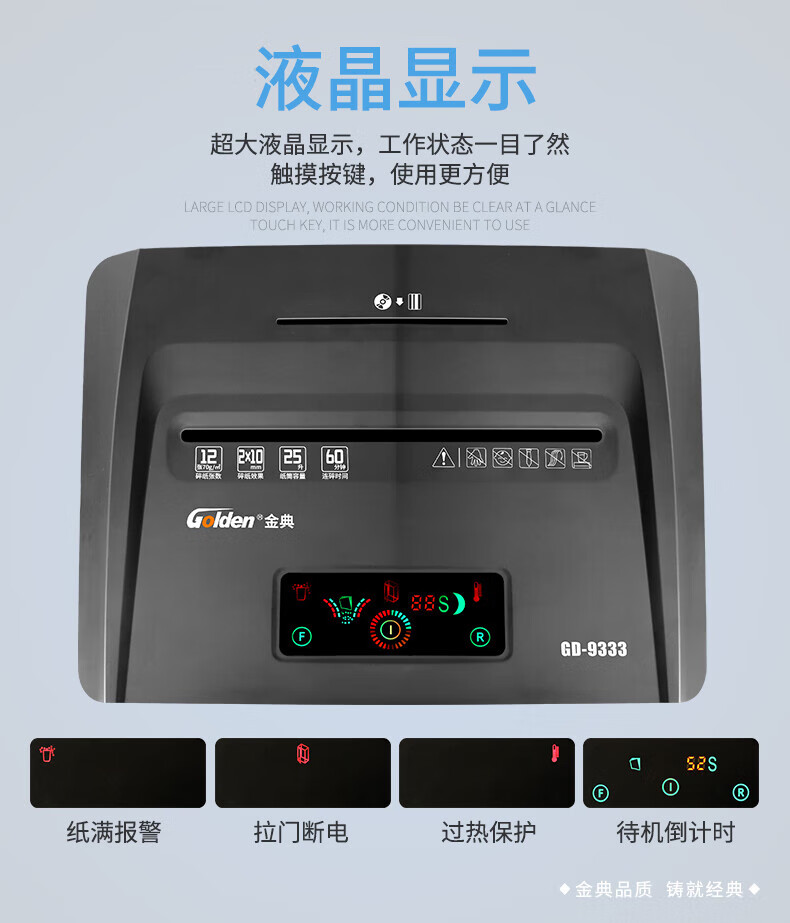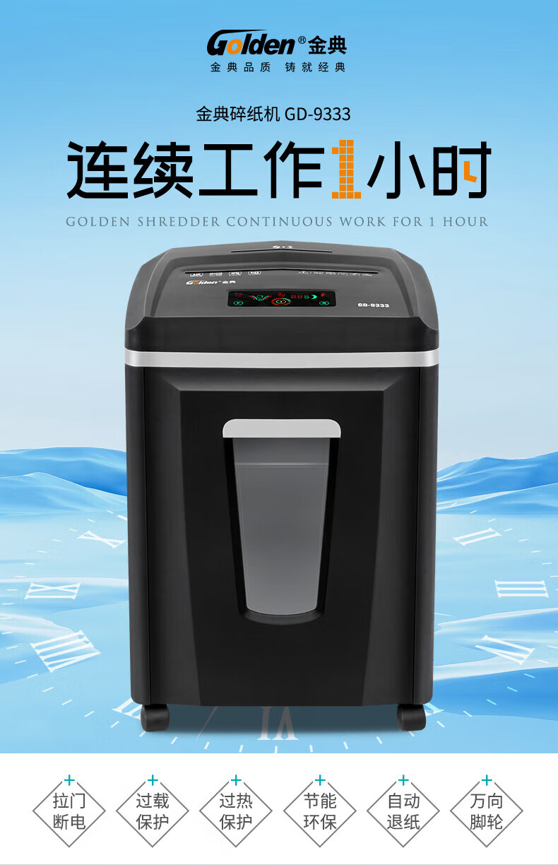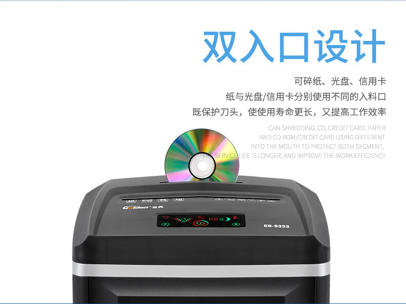 金典(GOLDEN)GD-9333碎紙機商用辦公 雙入口可碎紙光盤卡單次12張連續(xù)工作1小時大容量25L